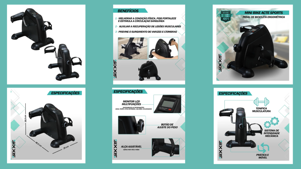 “A mini bike ergométrica para idosos é uma excelente ferramenta…”Benefícios de ter este produto: – Treina pernas e braços com um só equipamento, ideal para exercícios em casa ou no trabalho – Fortalece a musculatura e melhora a circulação sanguínea, promovendo saúde cardiovascular – Auxilia na reabilitação física, sendo perfeito para fisioterapia e recuperação de lesões – Previne varizes e cãibras com exercícios de baixo impacto – Monitor LCD que exibe tempo, RPM, distância, calorias e velocidade para acompanhamento preciso – Resistência ajustável para personalizar a intensidade do exercício – Compacta, leve e fácil de transportar, podendo ser usada em qualquer ambiente – Estabilizadores que oferecem firmeza e segurança durante o uso – Pode ser usada com as mãos ou pés, garantindo versatilidade no treino Características Técnicas: – Monitor: LCD multifunções (scan, tempo, RPM, distância, calorias, velocidade) – Resistência: ajustável por botão – Alça: ajustável para uso com pés ou mãos – Estabilização: estabilizadores frontais e traseiros – Dimensões: 30,6 cm (altura) x 40,5 cm (comprimento) x 35 cm (largura) – Peso: 3,31 kg – Uso: doméstico, fisioterapia e reabilitação Por que você deve ter este produto? – A Mini Bike Sixxis Life é ideal para quem deseja se exercitar com conforto e praticidade. Seu design ergonômico e multifuncional permite treinos em qualquer lugar, ajudando a manter a saúde em dia mesmo com a rotina corrida. Versátil, segura e fácil de usar, é perfeita para pessoas de todas as idades, inclusive idosos e pessoas com mobilidade reduzida. Uma ótima aliada para melhorar a qualidade de vida com pouco espaço e muito resultado. Perguntas e Dúvidas Comuns: Essa mini bike serve para fisioterapia? – Sim, é ideal para reabilitação física e fortalecimento muscular em fases de recuperação. É possível usar com as mãos e os pés? – Sim, ela foi desenvolvida para treino de membros superiores e inferiores com total segurança. Ela ocupa muito espaço? – Não. Seu tamanho compacto permite fácil armazenamento e uso até em ambientes pequenos. Tags: mini bike ergométrica pedal de bicicleta ergométrica mini bike de chão bicicleta ergométrica portátil exercício de baixo impacto reabilitação física fisioterapia idosos pessoas com mobilidade reduzida treino multifuncional monitor lcd ajuste de resistência pedal para mãos e pés prevenção de varizes prevenção de cãibras melhora da circulação fitness em casa equipamento leve portátil uso doméstico